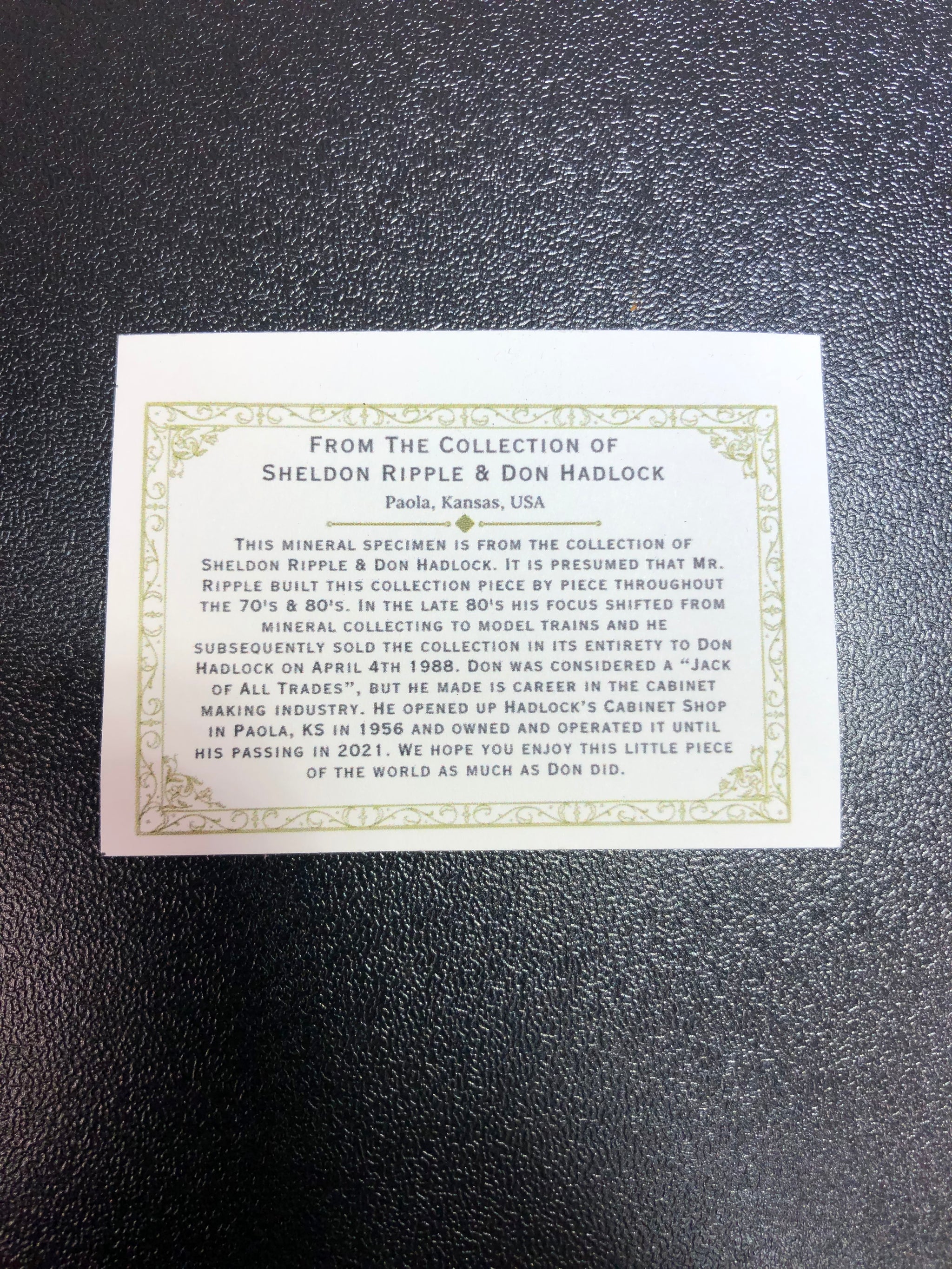 Ex. Sheldon Ripple & Don Hadlock Collection