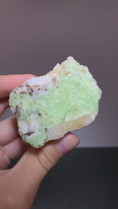 Beautiful light green scalenohedral crystals of calcite caused by vanadium inclusions. This material is unique to the locale in Garfield County, Utah.